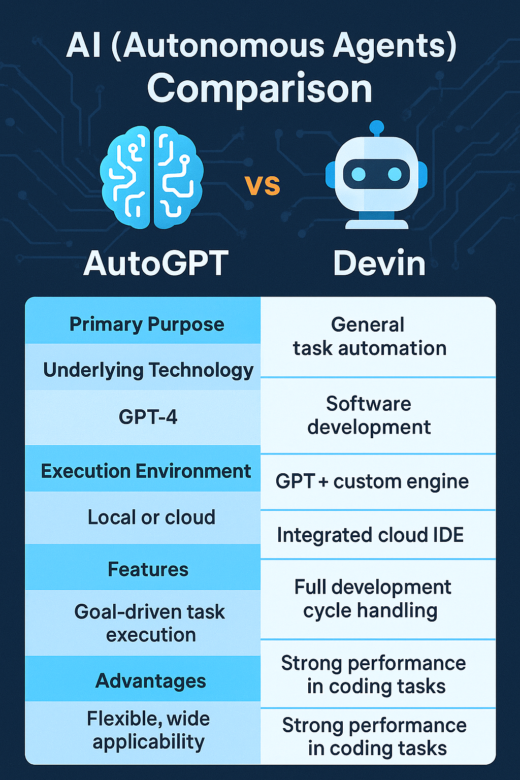AutoGPT는 폭넓은 실험이 가능하고 Devin은 실무에 바로 투입 가능한 점에서 각각 다른 강점을 지닙니다.